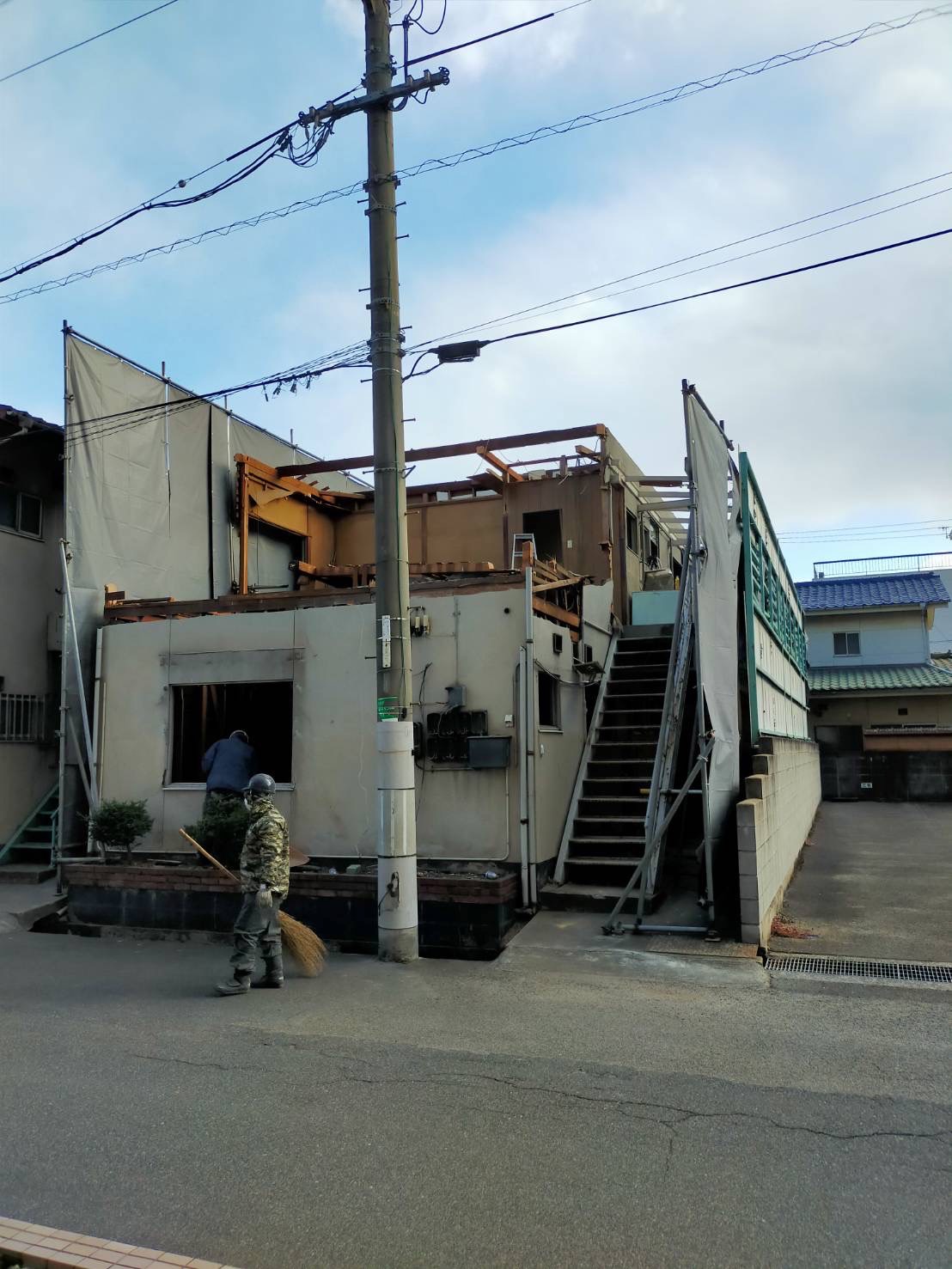 今回は、建物が道路に面しているため、人力での解体作業からスタートしました。