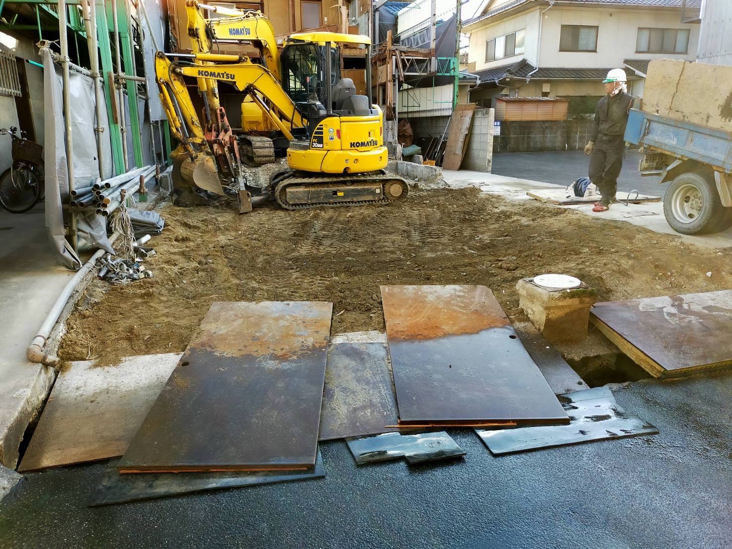 少し解体作業が進み、ミニ重機の搬入そして0.25クラスの搬入を行いました。