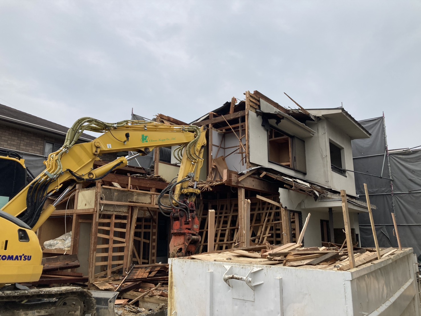 木造住宅の解体で、工期はおよそ2週間。近隣への配慮を徹底し、安全かつスムーズに作業を完了しました。